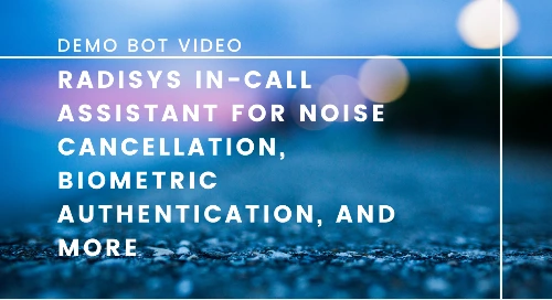 Resources > Videos Submitted by Radisys on 29 July, 2021 Demo: Radisys In-Call Assistant for Noise Cancellation, Biometric Authentication, and More Demo: Radisys In-Call Assistant for Noise Cancellation, Biometric Authentication, and More
